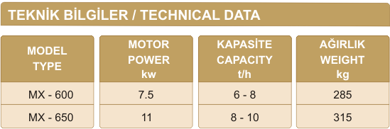 Bu makina mekanik olarak çalışmaktadır. Tahıl ve unun içindeki böcek, larva ve yumurtalarını yok etmek için dizayn edilmiştir. Bu makina içerisinde yüksek devirde dönen rotor, demir dökümden ve özel bölümden meydana gelmiştir. Motor miline bağlı olan rotorun, dinamik balansı alınmıştır. Elektrik motoru flanşlı tip kullanılmıştır. Ayrıca bu makina yatay veya dikey olarak imal edilmektedir. Her iki tip makina tavana veya zemine montaj edilebilir.