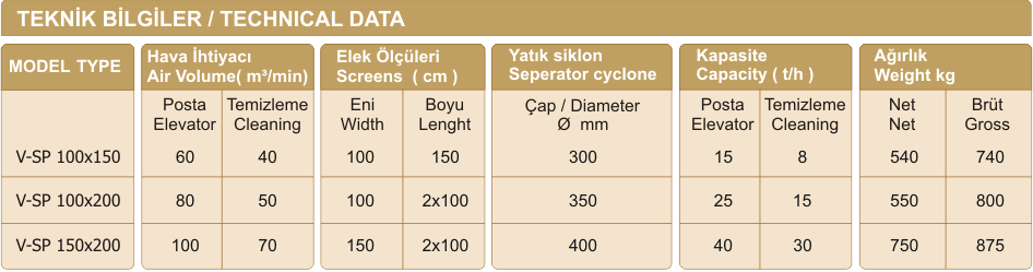 Un fabrikalarının yanında, her türlü bakliyat tesislerinde sınıflandırıcı olarak kullanılmaktadır.