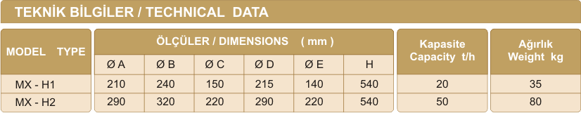 Not: İsteğe bağlı olarak her tonaja göre imalat yapılır.