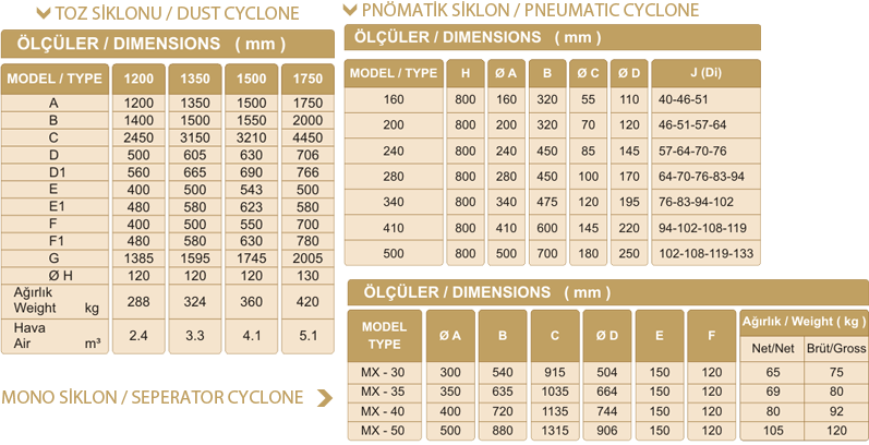 Mono Siklon Özellikleri