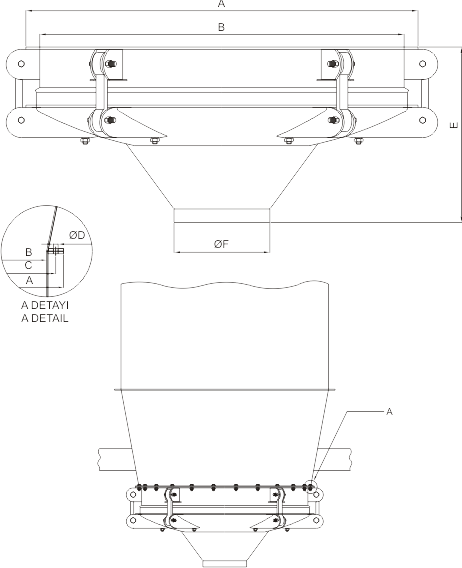 Bu model tozlu materyallerin: Beton, çelik, fiber gibi silolardan boşaltma ile ilgili bütün problemlerini çözmüştür. Bu sistemde üstteki sabit kısım siloya bağlanır. Alt vibrasyonlu kısım materyalin düzgün ve devamlı akışını sağlar. İki kısım birbiriyle, vibrasyona dayanıklı, kollar ve esnek lastik diyafram ile bağlanmıştır.
