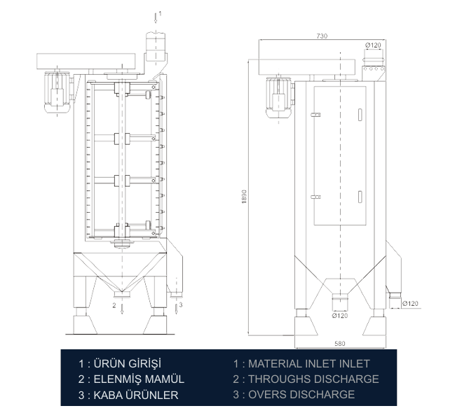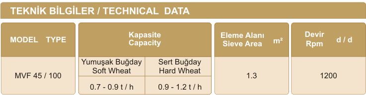 Kepek fırçaları ve filitre ürünleri için kullanılır. Giren ürünlerin maximum nem oranı % 16 olmalıdır. Elek için ipek kullanılır.( 6.7 numaralar )